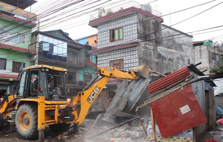Kathmandu, Feb 20: Tokha municipality has started removing structures illegally constructed along the Bishnumati river banks. Temporary structures built illegally along the Bishnumati corridor and its adjoining areas were evicted this morning to make the corridor beautiful and well-managed. Chief Administrative Officer of the Municipality, Sher Bahadur BC, shared the