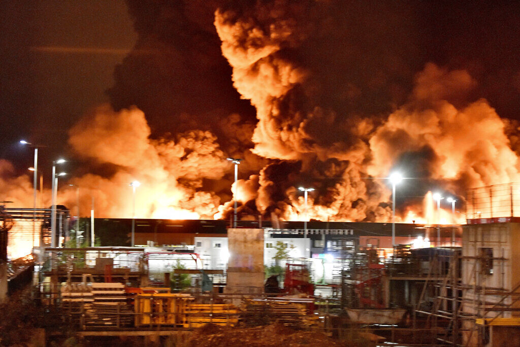 By ANGELA CHARLTON Associated Press PARIS, Sept 26 (AP) — A huge fire at a Normandy chemical plant spewed a mass of black smoke over a wide region Thursday, prompting French authorities to shut down roads and schools and order people to stay indoors as firefighters battled for hours to