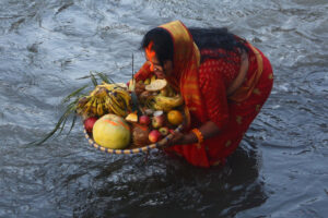 President Bidya Devi Bhandari has worshipped Chhathi Mai by reaching the Chhath Puja site built on the bank of Bagmati