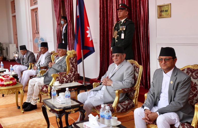 Kathmandu, April 14: President Ramchandra Paudel today decorated 728 people from various walks of life including the former Prime Minister the late Sushil Koirala with various honours, decorations and titles. The President conferred the Nepal Ratna on former Prime Minister Sushil Koirala (posthumously) amidst a ceremony at the Office of