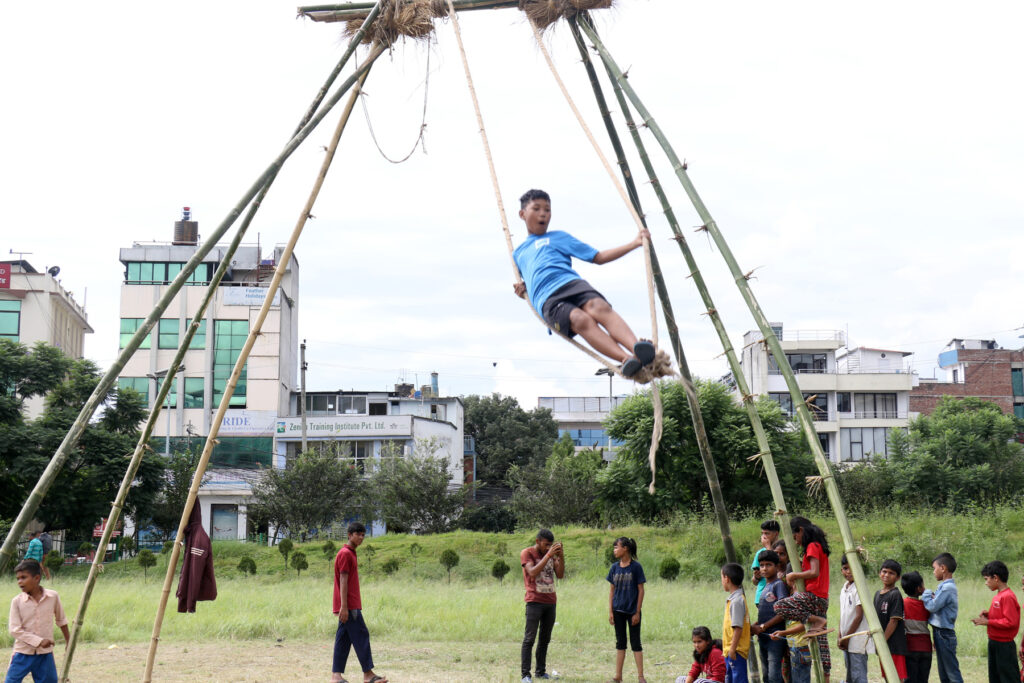Armed Police personnel enjoying Linge Ping in Doti. Photo: RSS Nepal Children enjoying Linge Ping in Kathmandu. Photo: RSS Nepal