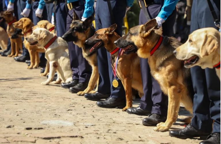 Kathmandu: The third day of Yamapanchak celebrated on Monday by worshiping the dog and giving them sweet. On the day of Kukur Tihar (Dog Tihar), the trained police dogs presented their art at the Canine Department in Maharajganj. According to the head of the Canine Department, SSP Dipti Gurung, there