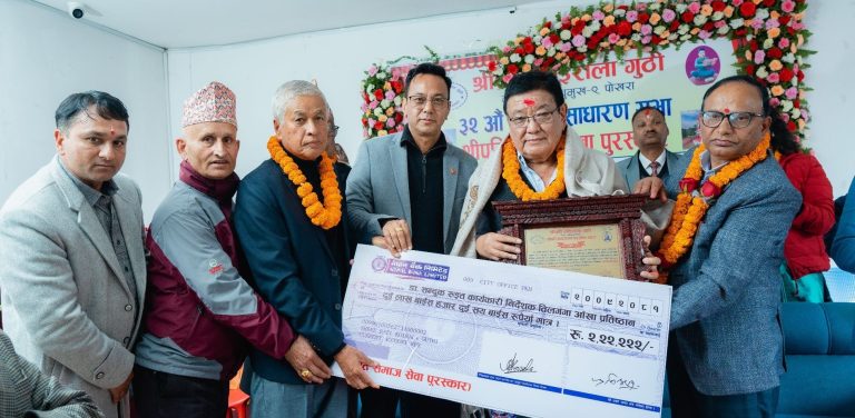Senior Ophthalmologist Sanduk Ruit has been felicitated. At a programme organized by the Dallu Residence Local Committee, the international award