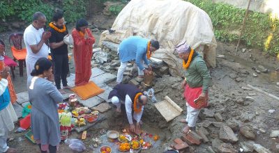 The reconstruction of the renowned Talbarahi Temple in Baidam of Pokhara metropolis-6, Kaski has begun. Metropolis mayor Dhanaraj Acharya performed