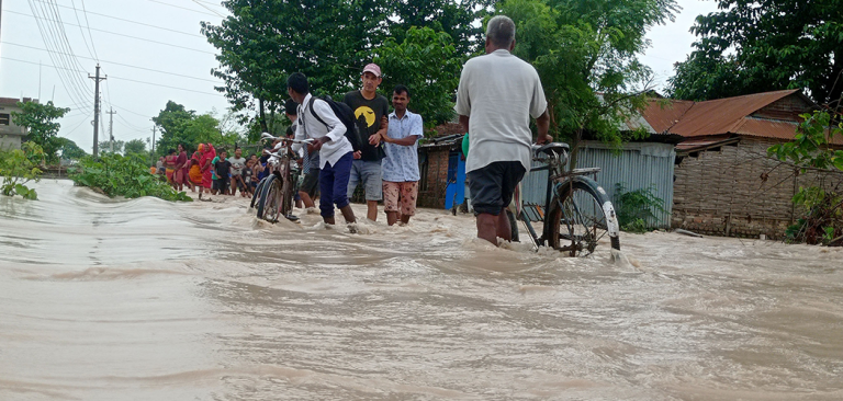 Sunsari, Oct 7: More than 1,000 houses were affected from flood occurred with incessant rainfall on Saturday and Sunday in Sunsari district. Superintendent of Police at the District Police Office, Keshav Thebe, shared that the flood had affected 1,370 houses at Inaruwa, Dharan, Itahari, Barahakshetra, Duhabi, Ramdhuni, Inaruwa, Gadhi, Barju,