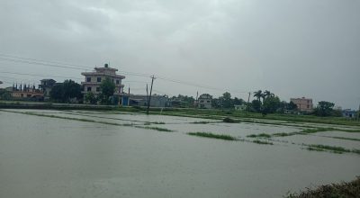 The Madi-Thori road in Chitwan has been obstructed due to the flooding caused by the swollen Ghangharkhola rivulet following incessant