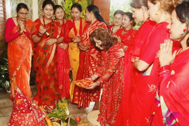 Kathmandu, Aug 30:Minister for Foreign Affairs Dr Arzu Rana Deuba brought Gaura to her residence in Budhanilkantha, Kathmandu on Saturday by conducting religious rituals and special worship. Previously, she would go to her home in Dhangadhi to worship Gaura, a symbol of Goddess Parbati, but this year she conducted the