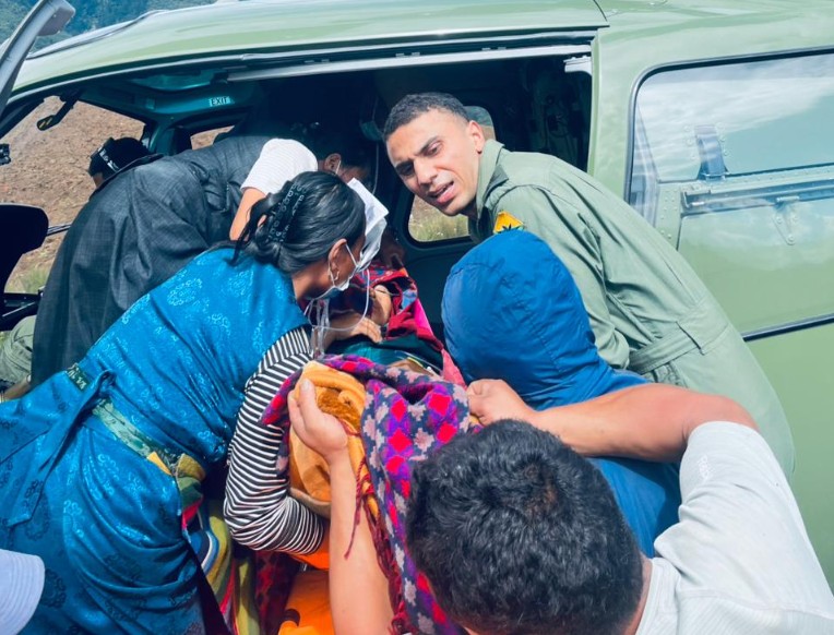Kathmandu, Oct 6: Four women-three expectant mothers and one new mother- were rescued by the Nepali Army today. They were airlifted from Sirsire of Maijogmai-5 in Ilam, Chhange of Sandakpur-1 in Ilam, Pul Bhanjyang of Phidim-12 in Panchthar, and Hunggung of Bhotkhola-3 in Sankhuwasabha. The women were taken to B