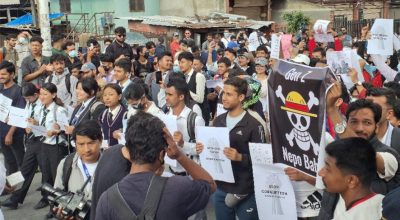 Youths have staged protests in front of the Federal Parliament building in Baneshwor against the government’s decision to shut down