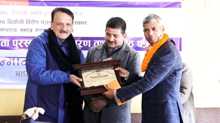 Nuwakot, Jan 20: The Govinda Biyogi Journalism Award, 2080 has been presented to four journalists, including senior journalist and former chairperson of the RSS Kul Chandra Wagle. At the Biyogi journalism award distribution and felicitation programme hosted by the Editors' Society Nepal here today, news chief of Yoho Television Jibram