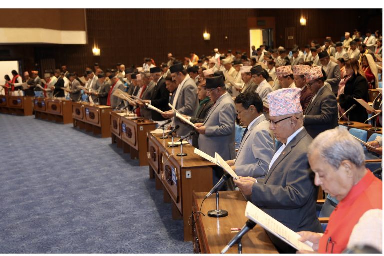 Kathmandu: House of Representatives (HoR) seniormost member Pashupati Shumsher JB Rana administered the oath of office and secrecy to newly-elected members of the lower house of the Federal Parliament. The oath-taking ceremony was held at the New Baneshwor-based Federal Parliament Building and Rana as the HoR seniormost member administered oath