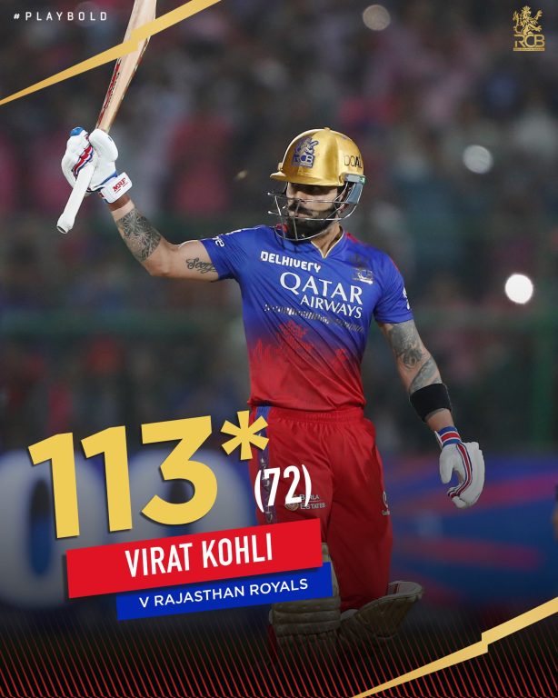 Jaipur, April 7: Virat Kohli's blitzkrieg century went in vain as Jos Buttler's thunderous hundred lit up the Sawai Mansingh Stadium to power Rajasthan Royals (RR) to 6-wicket victory over Royal Challengers Bengaluru (RCB) on Saturday. Buttler's century in his landmark 100th IPL match snatched the limelight from the record-making