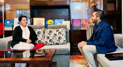 Kathmandu, Nov 17: Minister for Communications and Information Technology Jagdish Kharel called on former President Bidya Devi Bhandari at her