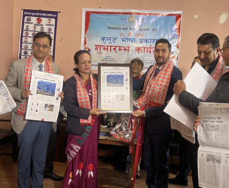Kathmandu, Dec 2: Minister for Communications and Information Technology, Jagdish Kharel, has called on everyone for their togetherness to build an inclusive Nepal. Inaugurating the Kulung language page in the Gorkhapatra daily amidst a programme at Gokarneshwor-3, Kathmandu on Tuesday, Minister Kharel viewed a collective campaign could help Nepal enrich