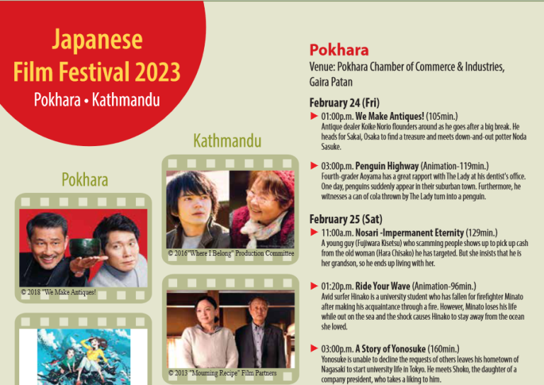 Kathmandu, March 23: With the aim of promoting Japan and her culture to the friendly people of Nepal, the Embassy of Japan is organizing the Japan Day and Japanese Film Festival in Kathmandu on March 25 and 26, 2023, in cooperation with the Japanese Language Teachers’ Association Nepal (JALTAN). According
