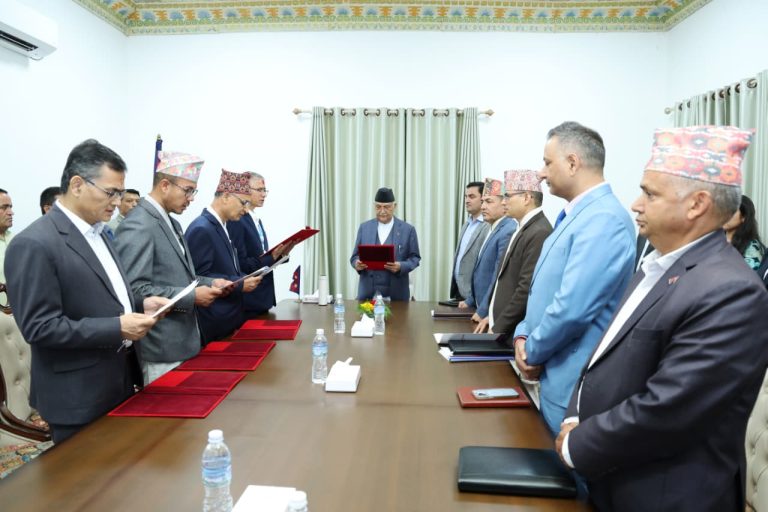 Kathmandu, Aug 14: The newly appointed vice-chancellors (VCs) of four health science academies took the oath of office and secrecy today before Prime Minister and Chancellor KP Sharma Oli. The oath-taking ceremony was held at the office of the Office of the Prime Minister and Council of Ministers in Singha