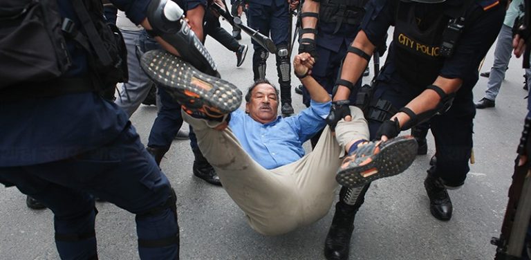 Kathmandu, June 1: Eight persons including Chairman of the Rastriya Prajatantra Party (RPP) Nepal, Kamal Thapa, has been arrested from Narayanchaur of Kathmandu. They were arrested in course of demonstration. The Police arrested Chairman Thapa, and leaders and cadres of his party, as they breached the restricted area, according to