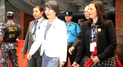 Kathmandu, May 5: The visiting Minister for Foreign Affairs of Japan, Kamikawa Yoko, paid a courtesy call on President Ramchandra Paudel at the President House in Shital Niwas today. On the occasion, President Paudel said Nepal is very much concerned about protecting the Himalayas and sources of water to save