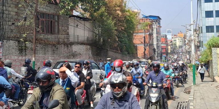 Kathmandu, April 20: Daily life in the Kathmandu Valley has been affected today due to the traffic congestion caused by