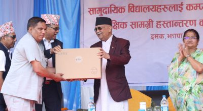 Jhapa, April 13: Prime Minister KP Sharma Oli has distributed educational materials, including computers, to 15 community schools of Jhapa,
