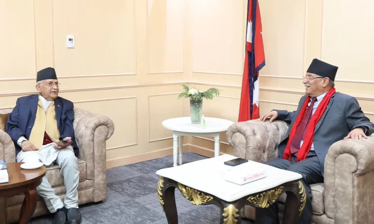 Kathmandu, Feb 2: Prime Minister Pushpa Kamal Dahal 'Prachanda' held a meeting with CPN (UML) Chairperson, KP Sharma Oli, with an objective of making the Parliament upcoming session effective. During the meeting held at the Office of the Prime Minister and Council of Ministers today, they discussed various issues, including