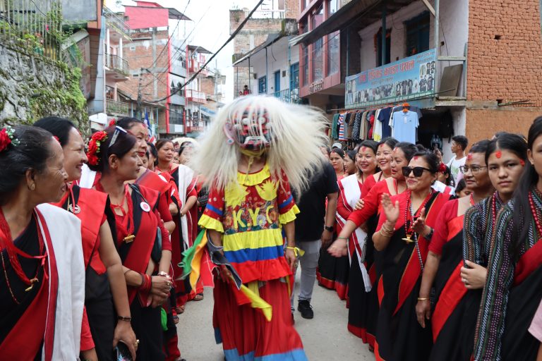 Sankhuwasabha, July 29:  The Lakhe Jatra, a cultural festival celebrated by the Newar community in the eastern hilly districts of Okhaldhunga, Khotang, Sankhuwasabha, Bhojpur, Dhankuta, Tehrathum, and Taplejung, commenced today. In Sankhuwasabha, the festivities began in Khandbari Bazaar, following rituals performed at the Bhimsen Temple in Khandbari municipality-1. According to