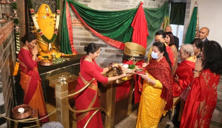 Kathmandu, Oct 19: Former President Bidya Devi Bhandari has reached the temple of Linga Bhairavi in Basundhara, Kathmandu today and offered pooja there. On the occasion of Navaratri, former president Bhandari reached Linga Bhairavi temple and performed pooja this afternoon, as well as performed aarti and abhishek, said Ambika Shrestha,