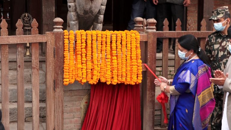 Kathmandhu : Historic Kasthamandap (Marusata) has been opened to the public from today, following its restoration. The iconic monument was damaged by 2015 earthquake. President Bidya Devi Bhandari displayed a key of the building. The key was presented to the Head-of-the State by mayor Bidya Sundar Shakya to mark the