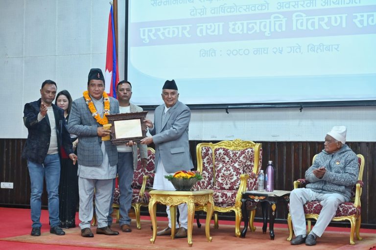 Kathmandu, Feb 8: President Ramchandra Paudel has said that corruption-free society and good-governance is a main basis for development. Addressing a prize distribution programme organized by Min Kumari Rana Foundation at the Office of the President on Thursday, the President said happiness in the face of poor, marginalized and backward