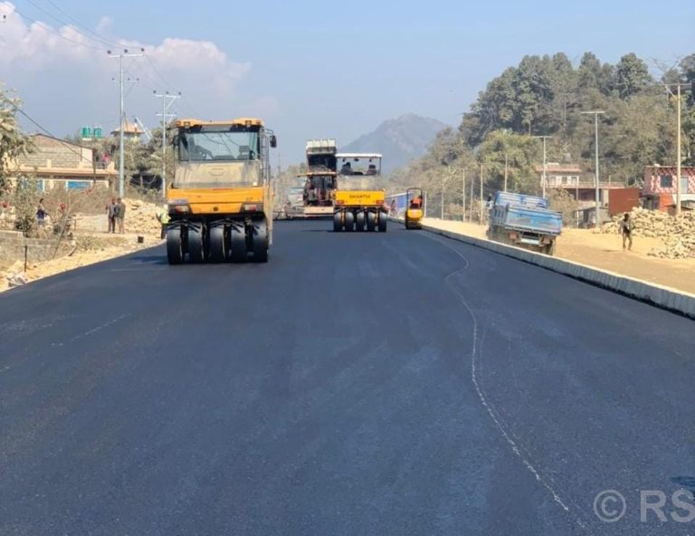 Damauli, Jan 20: Under the ongoing Muglin-Pokhara road expansion project, 19.5 km road has been blacktopped. The blacktopping is done