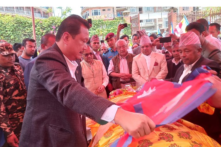 Kavre, May 11: The funeral rites of Mukesh Kayastha have been performed with state honours. Kayastha, 32, from Banepa, was injured during the second people's movement in 2063BS and got bed-ridden since then. Kayastha died in course of treatment on Wednesday evening. His last rites were performed as per Newari