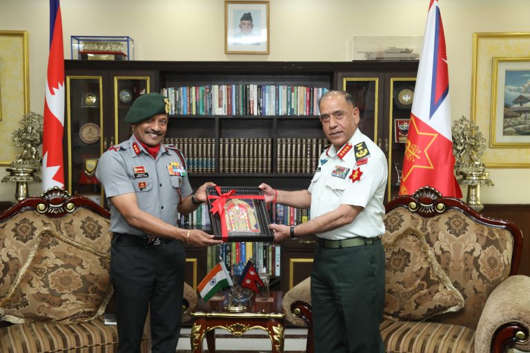 Kathmandu, April 14: Lieutenant General of Indian Army Pradeep Chandran Nair has held a courtesy meeting with Chief of Army Staff (CoAS) Prabhu Ram Sharma. In the meeting held at the at the Nepali Army's headquarters in Kathmandu on Sunday, the two discussed furthering bilateral ties between India and Nepal.