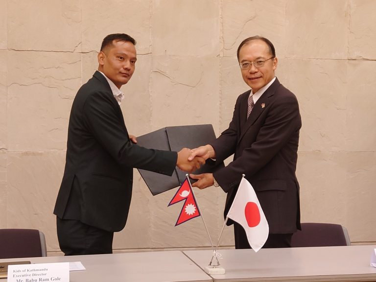 Kathmandu, Nov 30: Ambassador of Japan to Nepal Kikuta Yutaka signed a grant contract on Wednesday with Babu Ram Gole, Executive Director of Kids of Kathmandu, for the construction of new classrooms at Shree Chandrawati Secondary School in Udayapur District. According to Embassy of Japan in Kathmandu, this project was