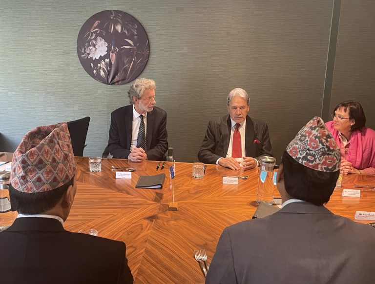 Kathmandu, Feb 14: Minister for Foreign Affairs Narayan Prakash Saud held a bilateral meeting with Winston Peters, Deputy Prime Minister and Minister for Foreign Affairs and Trade (MFAT) of New Zealand at Wellington today. During the meeting, both sides expressed satisfaction over the excellent state of bilateral relations between Nepal