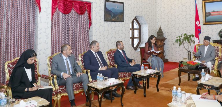 Kathmandu, Aug 27: Minister of Foreign Affairs of Oman Sayyid Badr bin Hamad bin Hamood Albusaidi paid a courtesy call on President Ramchandra Paudel at the latter's Office in Rastrapati Bhawan, Sheetal Niwas today. During the meeting, President Paudel mentioned that establishing an embassy of Oman in Kathmandu would be