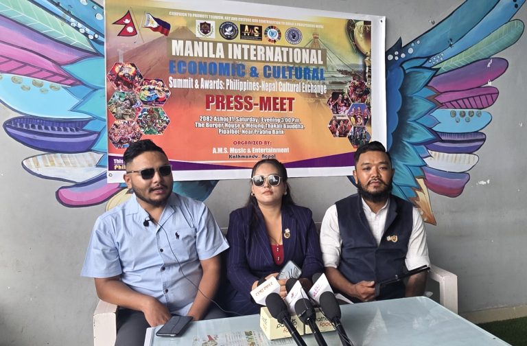 Kathmandu, Sept 28: The AMS Music and Entertainment, Nepal, and Global Academy for Human Excellence, Philippines, are to organise the 'Manila International Economic and Cultural Programme' at Manila of Philippines on coming December 9. At a press conference organised here, Chairperson of the AMS Music and Entertainment, Satya Kala Tamang