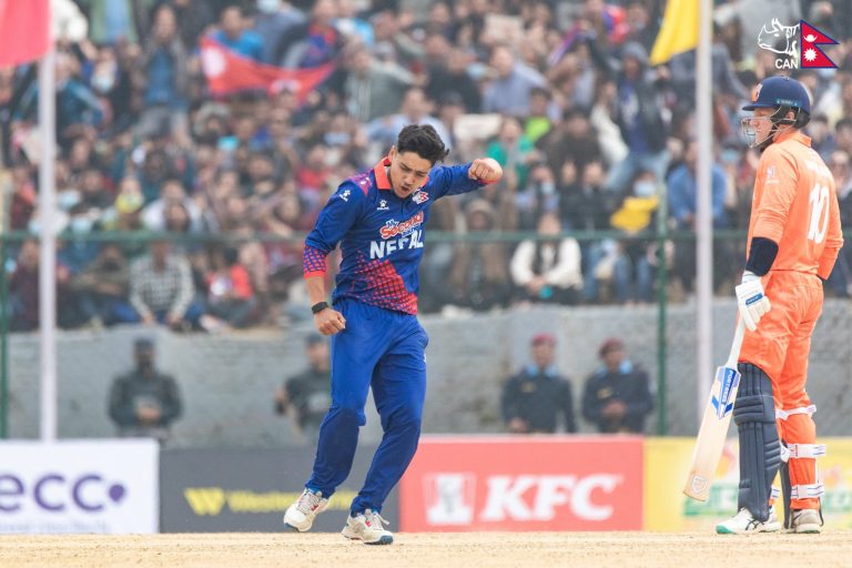 Kathmandu, March 2: Nepal has defeated the Netherlands by six wickets in a one side performance in the tri-nation tournament played at Kirtipur stadium today. Nepal successfully chased a target of 120 runs within 15 overs loosing just four wickets. Nepali captain Rohit Paudel top scored with 46 runs. Likewise