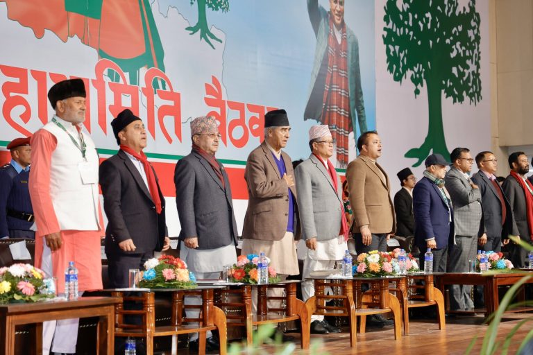 Lalitpur, Feb 19: The Nepali Congress (NC) Mahasamiti meeting kicked off at the Sunrise Convention Centre in Godabari of Lalitpur. The meeting aiming to formulate the party's official policy began coinciding with the Democracy Day. It was inaugurated by party central President and former Prime Minister, Sher Bahadur Deuba. The