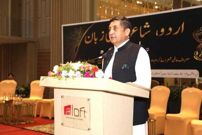 Kathmandu, July 22: Embassy of Pakistan, Kathmandu organized a literary event – poetry symposium, titled “Aalmi Mushaira; Urdu, Shaairi Ki Zubaan” in Kathmandu today in collaboration with Sahitya Academy, Nepal. Special Guests included Mr. Siraj Ahmed Farooqi, MP, CPN-UML and Ms. Kalpana Miya, MP, CPN-Maoist Centre. The event was attended