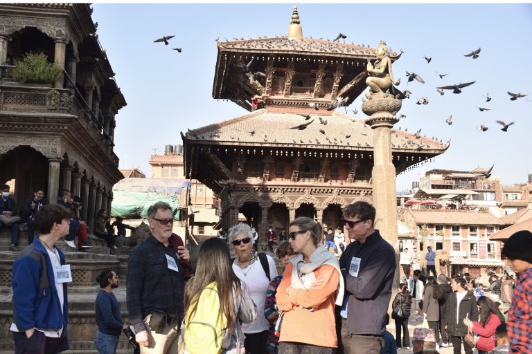 People gather, including foreign tourists, at Patan Durbar Square, Lalitpur. It's a historical place and important archeological place. Photo: RSS