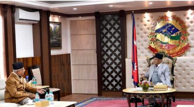 Kathmandu, April 12: Prime Minister Pushpa Kamal Dahal 'Prachanda' and CPN (UML) Chairman KP Sharma Oli have held talks on the latest contemporary political topics in the country. During the meeting took place at the Office of the Prime Minister and Council of Ministers today, the two leaders are learnt