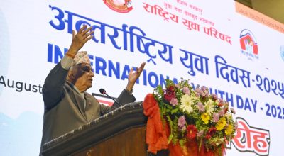 Kathmandu, Aug 12: President Ramchandra Paudel has said the onus of building prosperous nation lies on youths. In his address