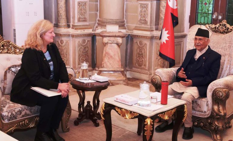 Kathmandu, Feb 13: French Ambassador to Nepal Virginie Corteval paid a courtesy call on Prime Minister KP Sharma Oli today. According to the Prime Minister's Secretariat, at the meeting held at the Office of the Prime Minister and Council of Ministers, Singha Durbar, various issues of bilateral relations and interests