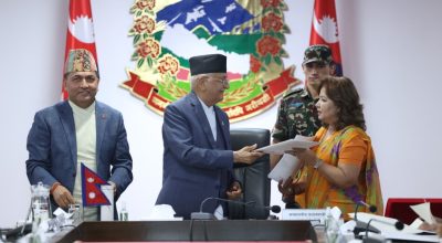 Kathmandu, Aug 14: Deputy Prime Ministers, Ministers and Chief Secretary signed a performance agreement with Prime Minister KP Sharma Oli