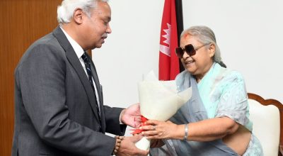 Kathmandu, Sept 16: Indian Ambassador to Nepal Naveen Srivastava paid a courtesy call on Prime Minister Sushila Karki. During the