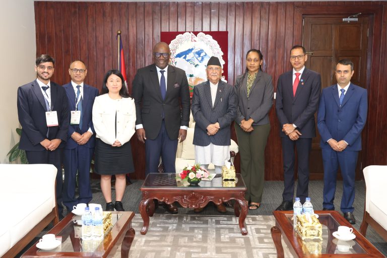 Kathmandu, May 18: Visiting Executive Director of the United Nations Fund for Responding to Loss and Damage Ibrahima Cheikh Diong today paid a courtesy call on Prime Minster KP Sharma Oli at latter's official residence in Baluwatar. During the meeting, the Prime Minister thanked him for taking part in the