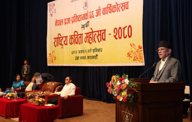 Kathmandu, June 24: Prime Minister Pushpa Kamal Dahal 'Prachanda' stated that the future creations and research should not be limited to tradition. Addressing an event organized on the occasion of 66th anniversary of the Nepal Academy here today, PM Dahal called for cultural transformation to institutionalize the social structure and