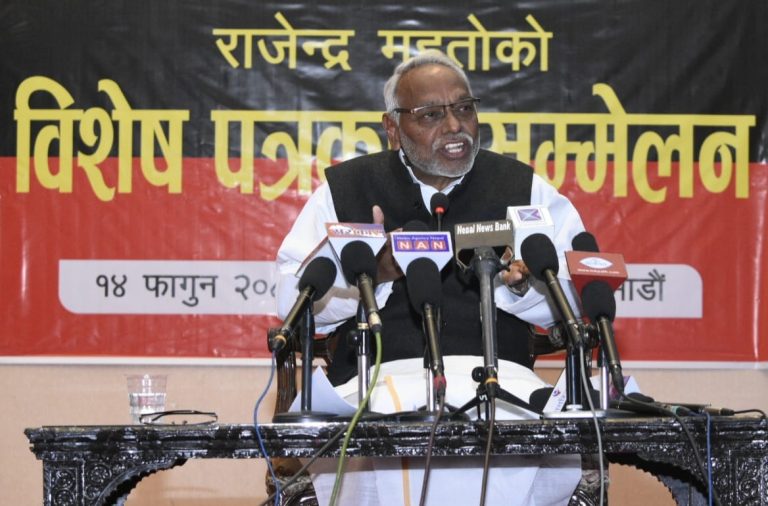 Kathmandu, Feb 26: Senior leader of Loktantrik Samajwadi Party (LSP) Nepal Rajendra Mahato, one of the senior leaders of the Madhes-based politics, quitted the party by organizing a news conference here Monday. Leaving the LSP Nepal, he announced a new campaign called 'Rastriya Mukti Kranti'. Mahato, who served ministerial portfolio