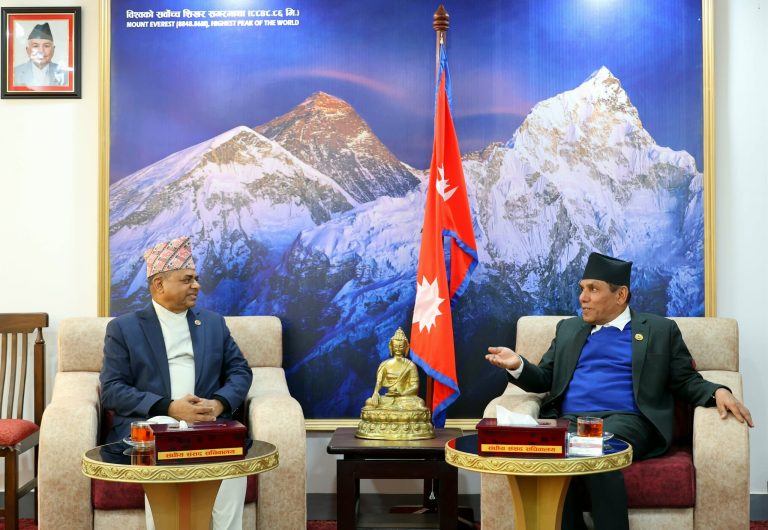 Kathmandu, Dec 3: Finance Minister Rameshore Prasad Khanal and Minister for Law, Justice and Parliamentary Affairs, Anil Kumar Sinha called on Chairperson of National Assembly (NA), Narayan Prasad Dahal, today. In separate meetings held at the Singha Durbar-based NA Chair office, matters pertaining to the construction of NA assembly hall,