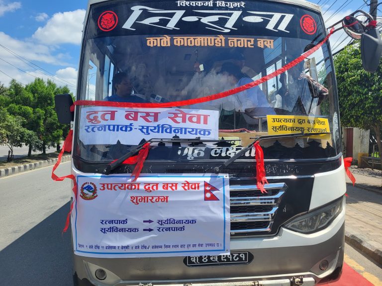 Kathmandu, Sept 20: The bus rapid transit service has come into operation from Ratnapark of Kathmandu to Suryabinayak of Bhaktapur from today. The service is operated in collaboration of the Ministry of Physical Infrastructure and Transport and the Federation of Nepalese National Transport Entrepreneurs. Minister for Physical Infrastructure and Transport